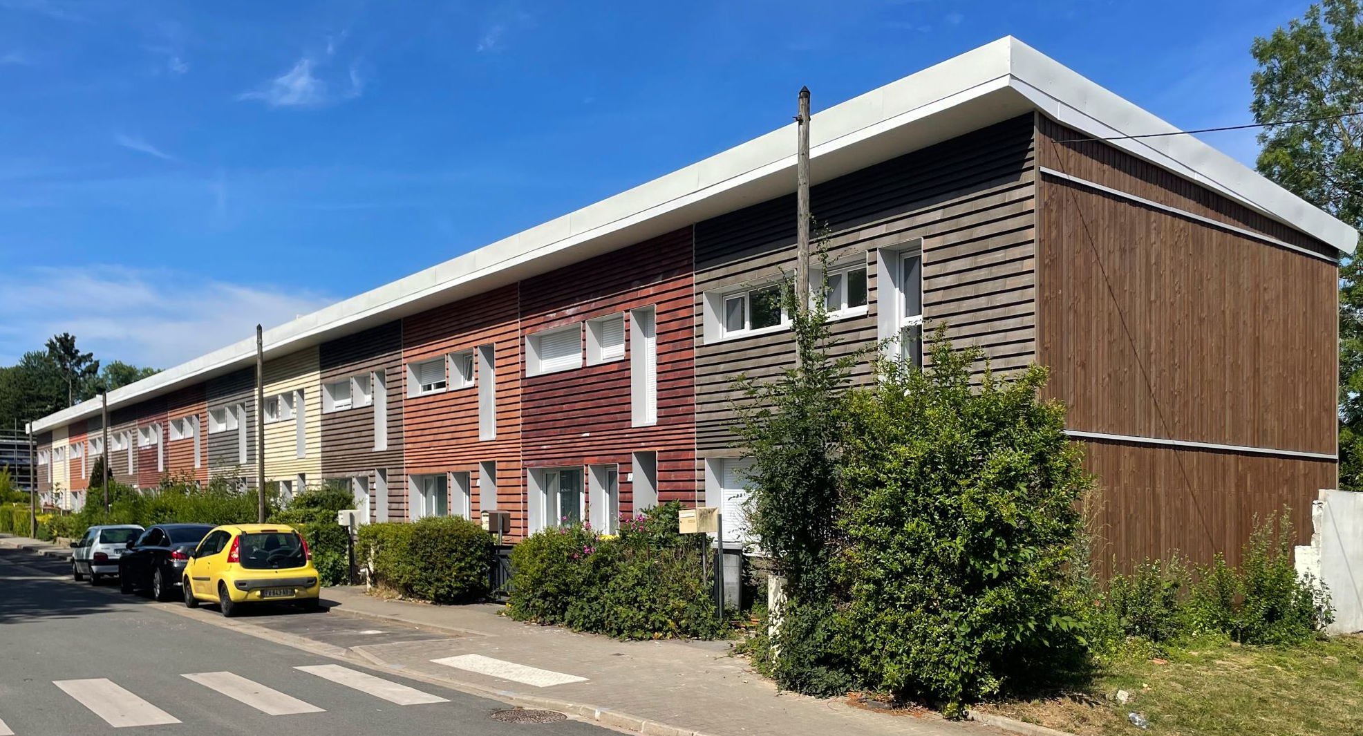 Marché de Conception-Réalisation portant sur la réhabilitation énergétique de 207 logements individuels en bande, ce projet se distingue par l’industrialisation et la préfabrication des procédés permettant la réduction des délais et des nuisances sur site ; une sobriété énergétique et environnementale avec l’usage de bois, laine de coton, laine de graminée ; système performant avec une tour thermique 4en1 assurant chauffage ECS et ventilation double flux. Un engagement énergétique de 30 ans sur un bilan nul est assuré par un agent de commissionnement externe.