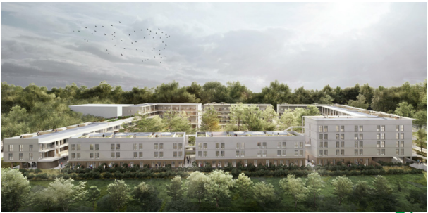 Ce projet consiste en la construction de 254 logements collectifs. Un travail important a été mené sur la performance de l’enveloppe thermique, la compacité du projet, le choix des matériaux (biosourcés et bas carbone) et le choix des énergies (raccordement au réseau de chaleur biomasse).