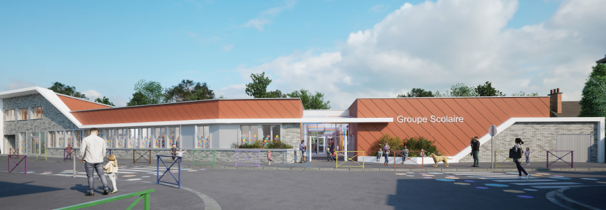 Réhabilitation et extension de l’école maternelle. Le projet prévoit la déconstruction d’une aile du bâtiment, puis la construction de deux extensions permettant d’accueillir 7 classes, une bibliothèque et un accueil périscolaire. Désimperméabilisation et végétalisation de la cour d’école.